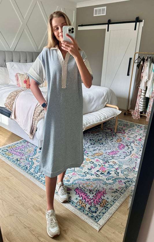 The Cora French Terry Midi Dress in Heather Grey