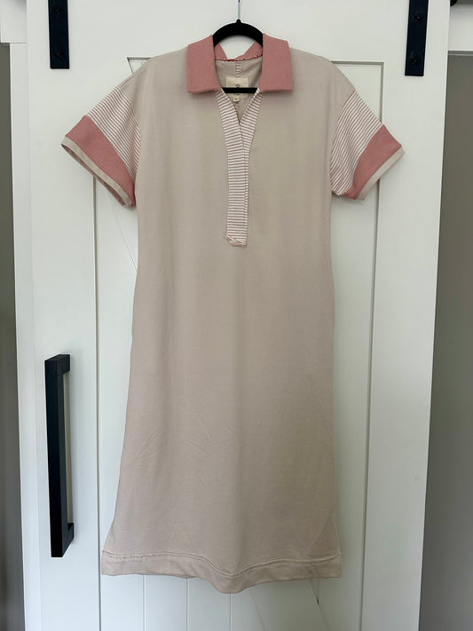 The Cora French Terry Midi Dress in Stone & Pink