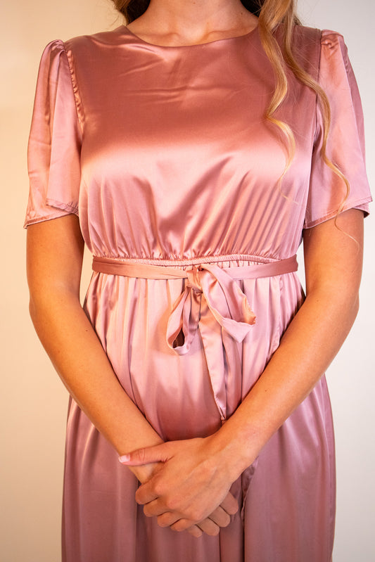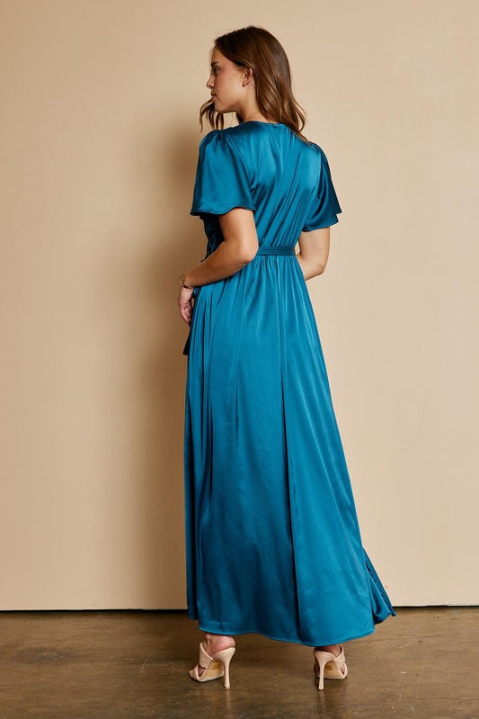 Sold outThe Cleo Satin Sparkle Dress in Teal