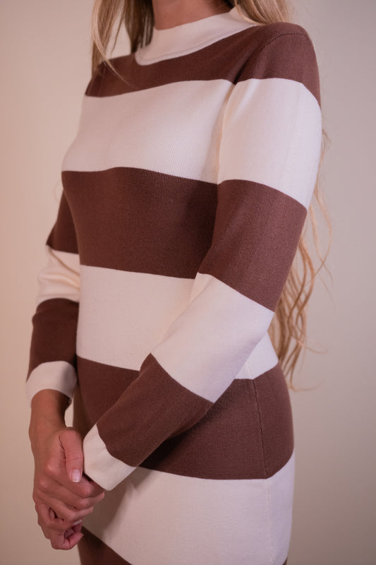 RESTOCKED - The Lucy Brown Stripe Mockneck Dress