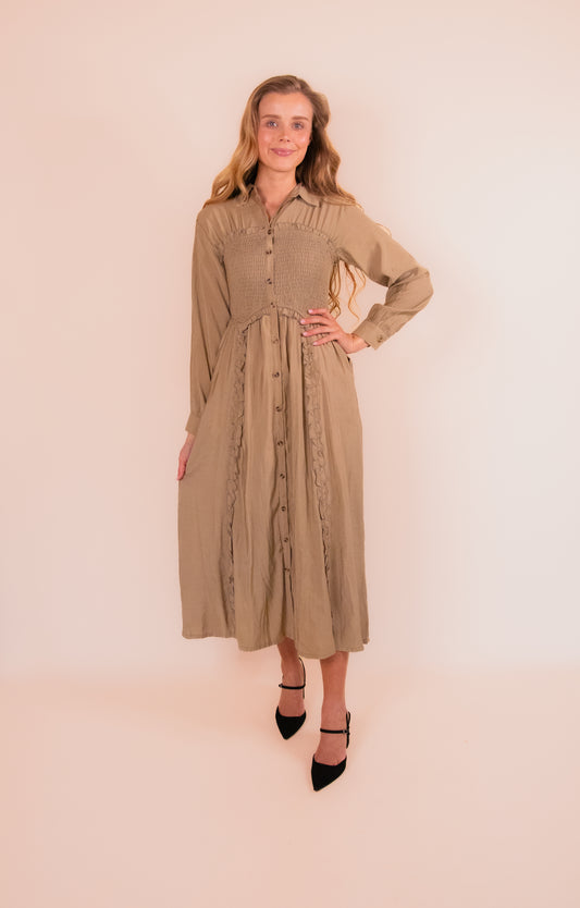 RESTOCKED - The Carrie Smocked Bodice Dress in Olive