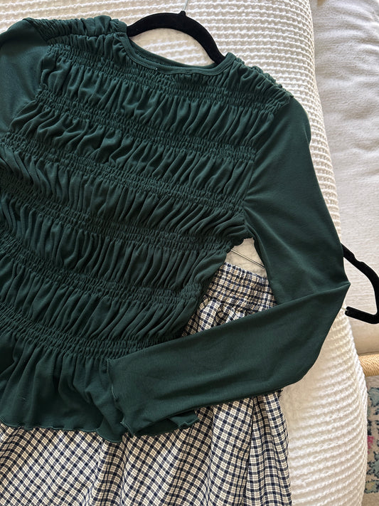 RESTOCKED - The Karly Smocked Long Sleeve Top in Emerald Green