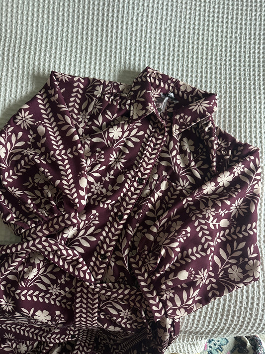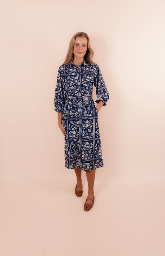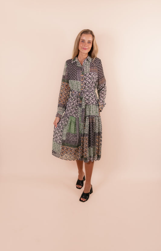 The Margot Printed Chiffon Shirt Dress in Green Multi