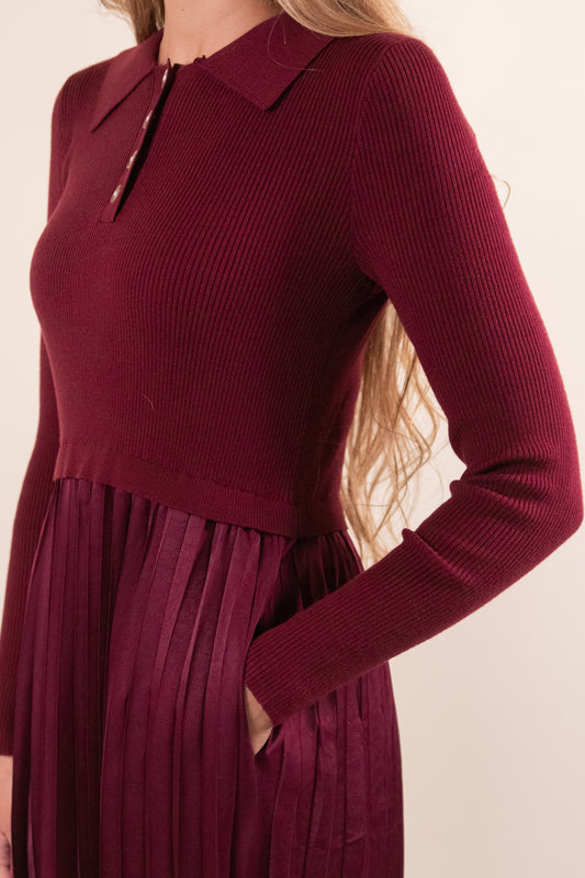 The Lacey Collar Sweater Dress in Cranberry Satin