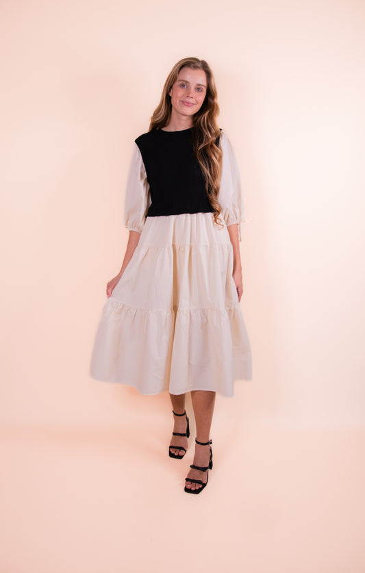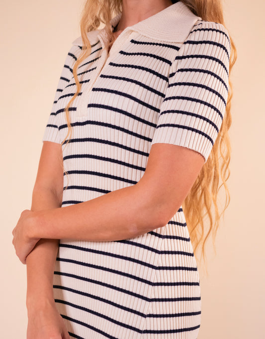 The Kara Tank Layering Knit Dress in Navy & White Stripes