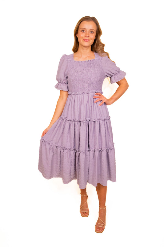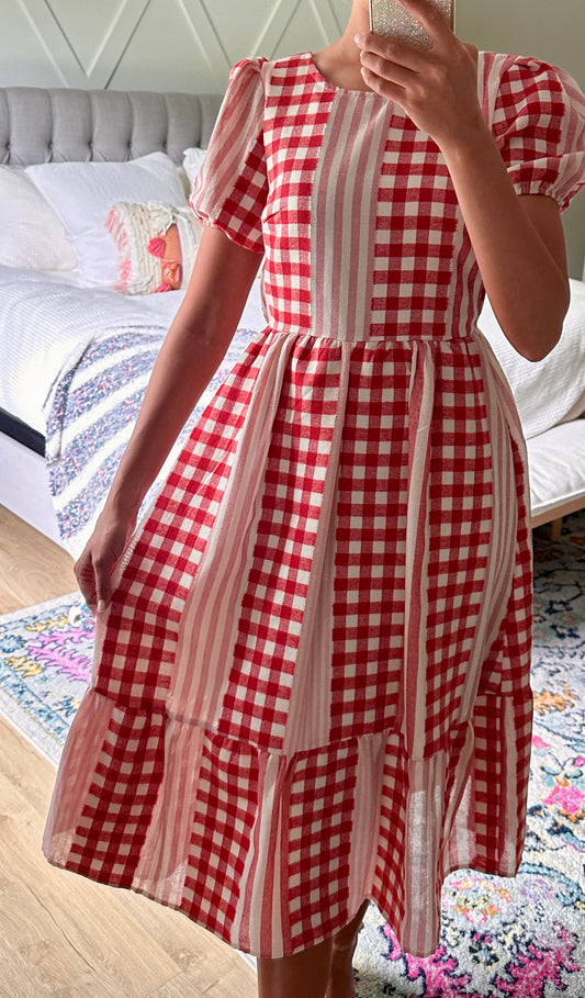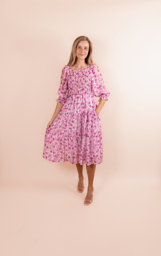 The Lexi Smocked Midi in Cotton Candy Gingham