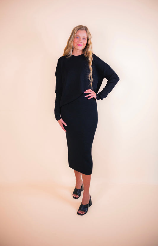 The Mia Sweater Set in Deep Navy Waffle Knit
