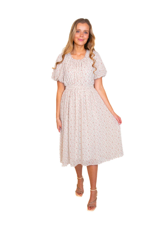 RESTOCKED - The Olivia Printed Shirt Dress in Cream