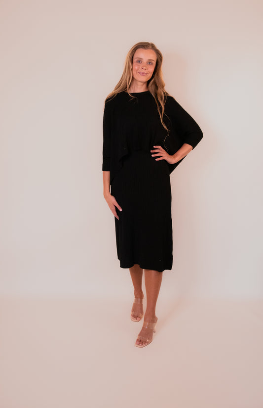 RESTOCKED - The Mina Ribbed Knit Dress Set in Black