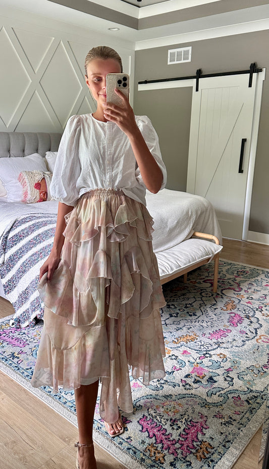 The Aria Ruffle Skirt in Watercolor Floral