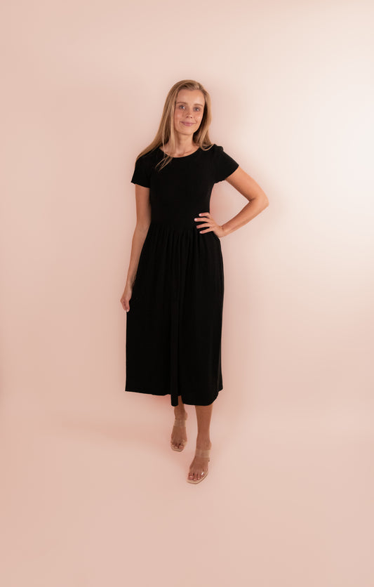 The Amelia Tiered Babydoll Dress in Black