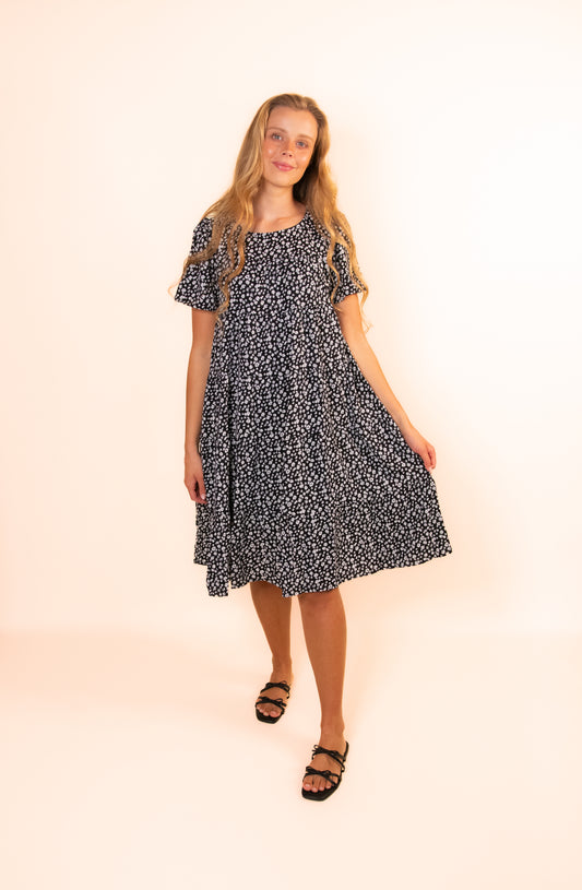 The Bella Babydoll Dress in Black Floral