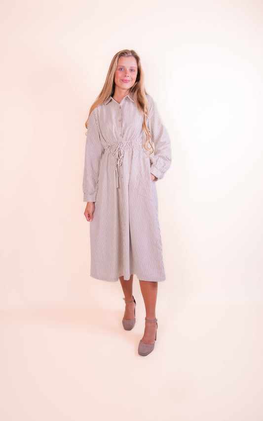 The Charlotte Collared Dress in Tan Stripe