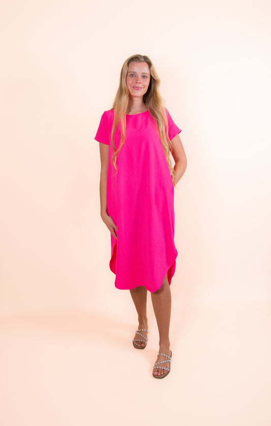 Sold outThe Jenna T-Shirt Dress in Hot Pink