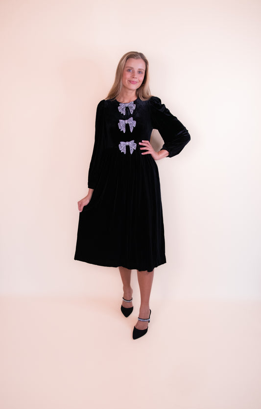 The Jade Ruffle Dress White Bow Embroidered Tulle