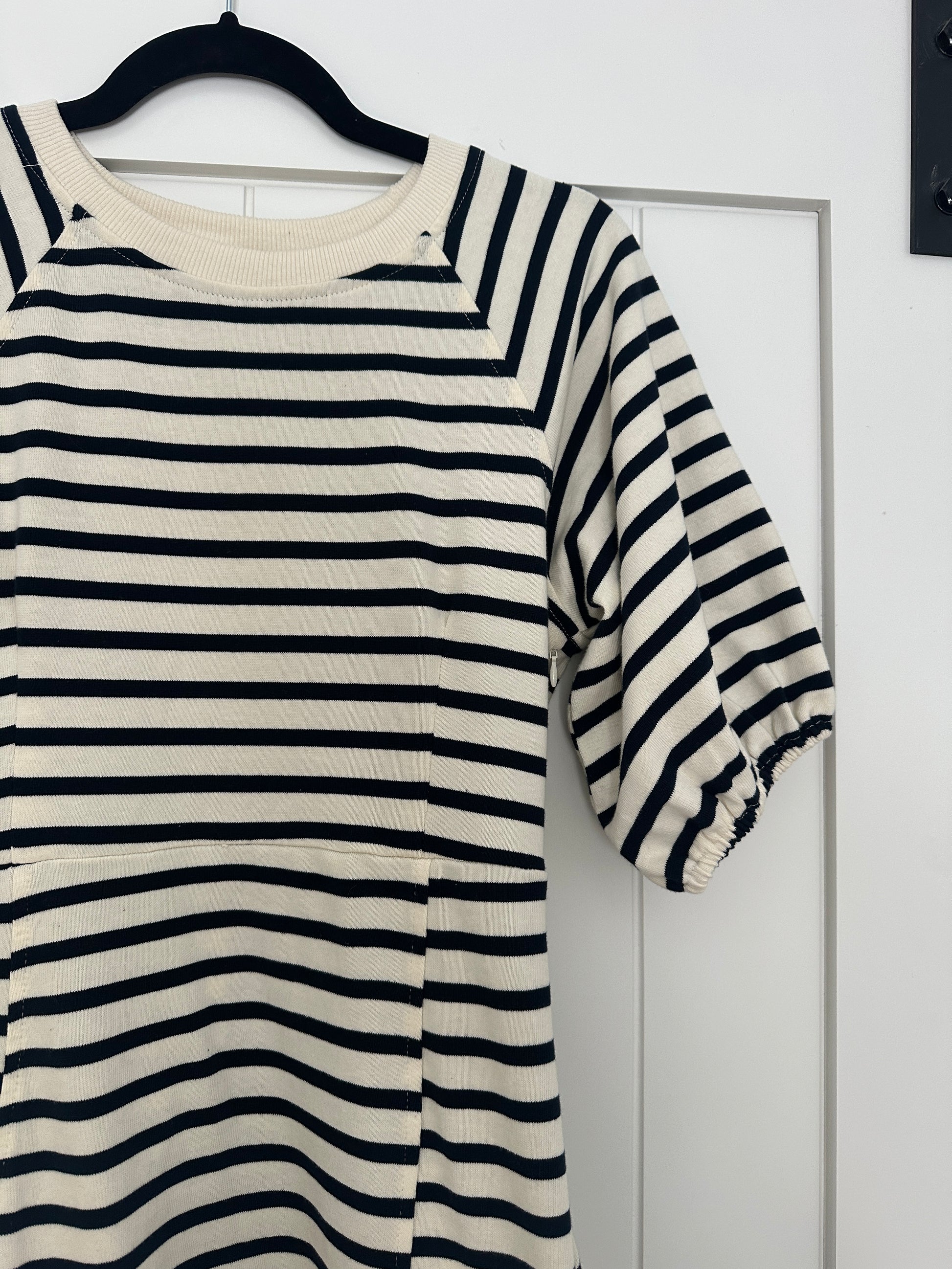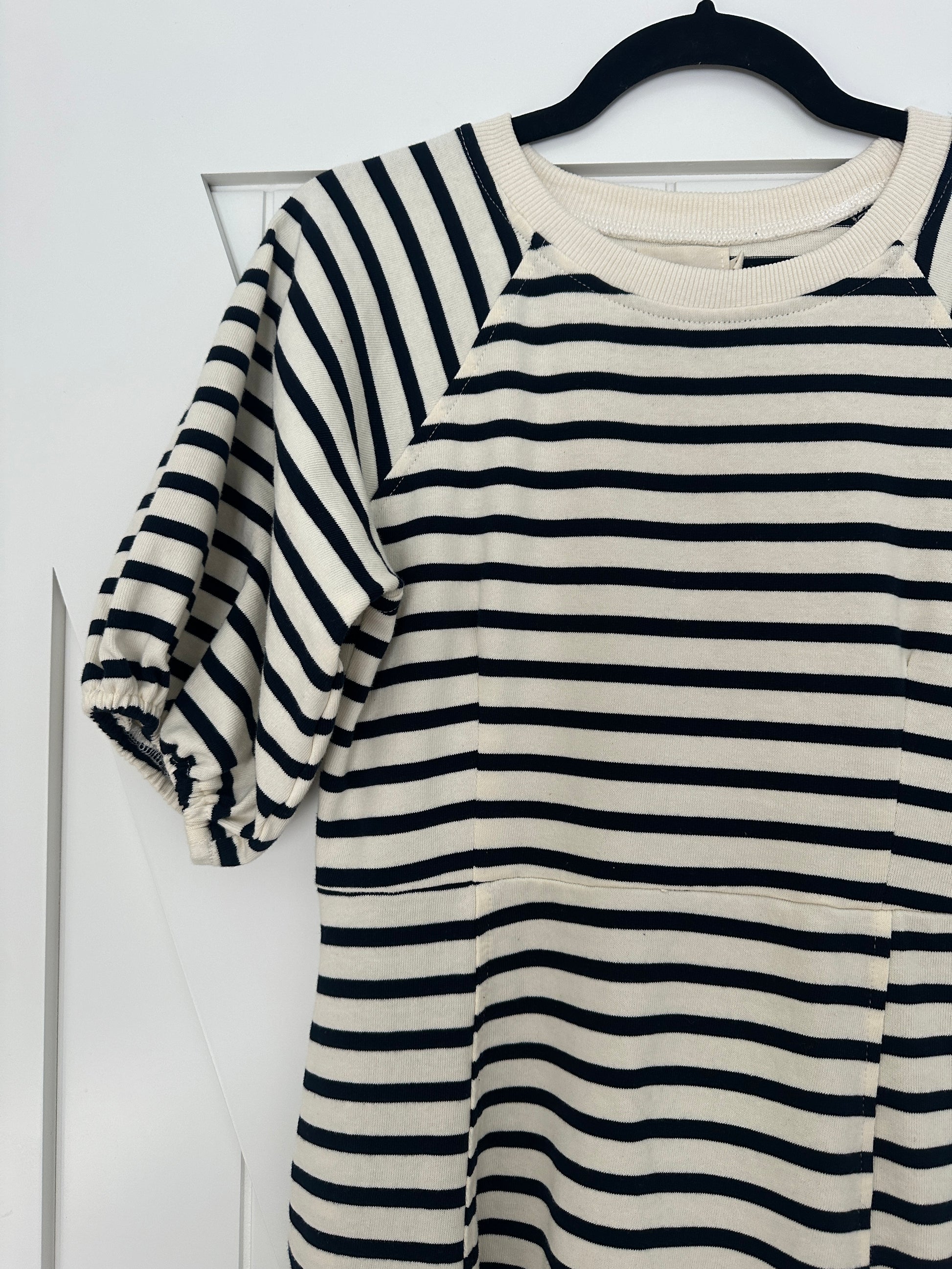 The Hayden Cotton Sweatshirt Dress in Navy Stripes