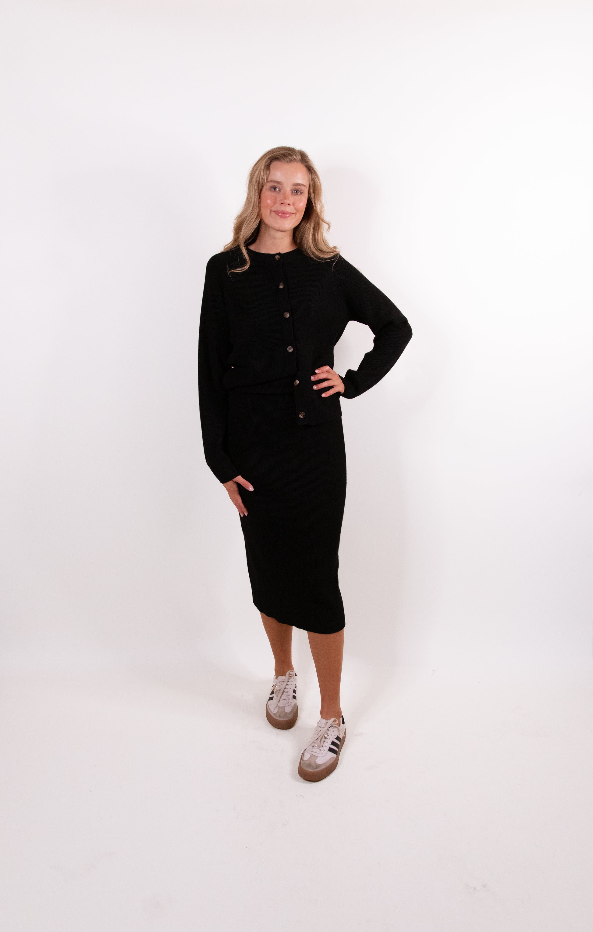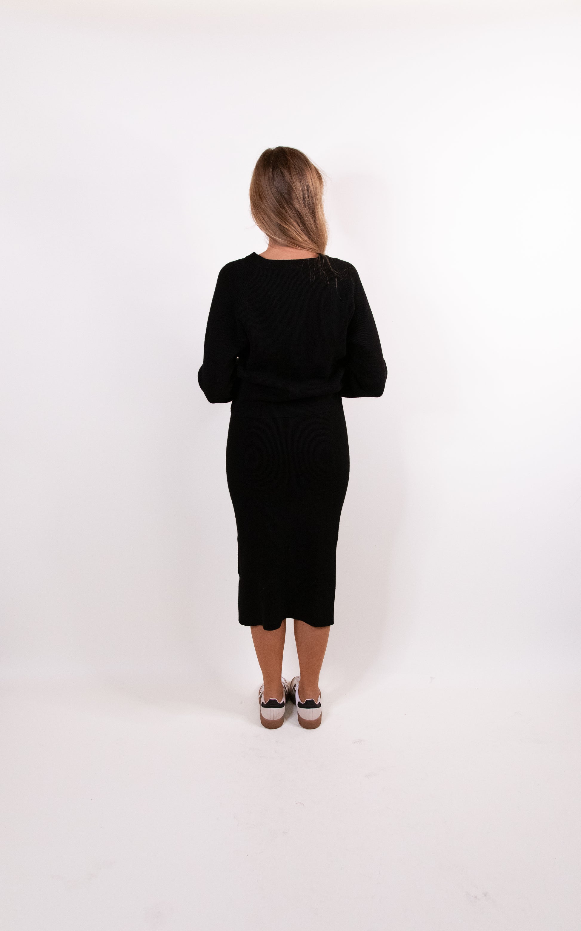 The Willow Ribbed Knit Sweater Set in Black