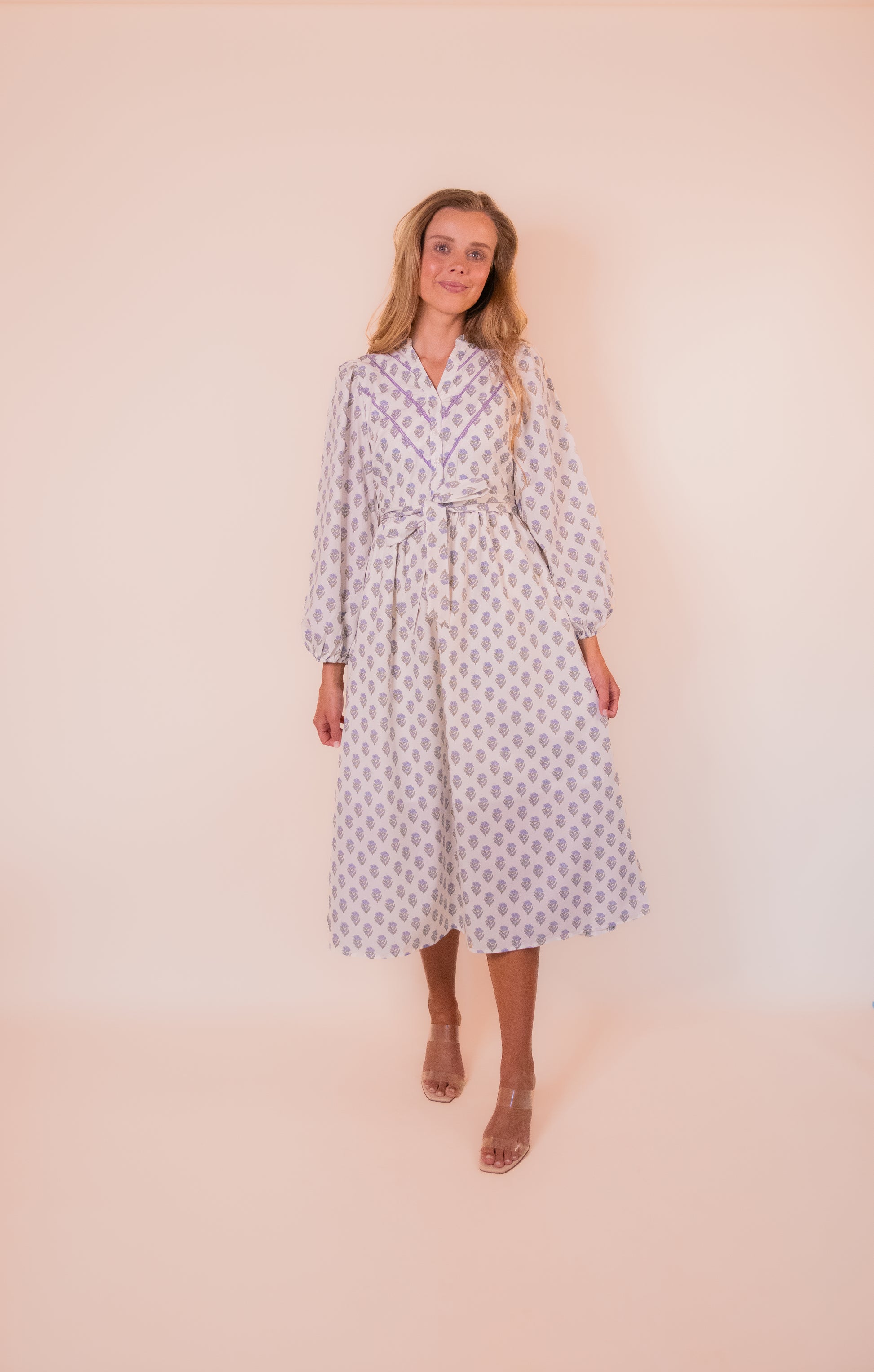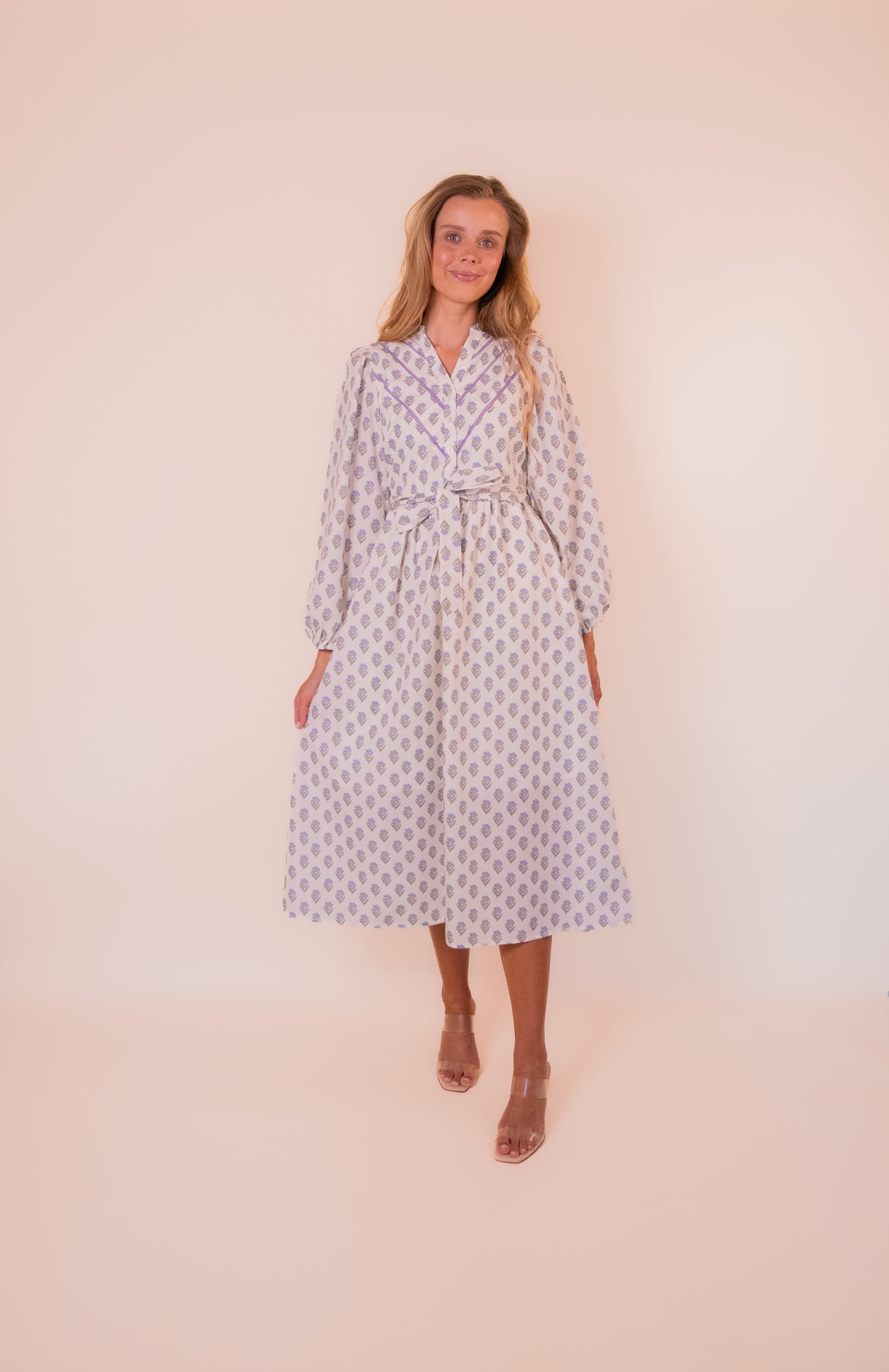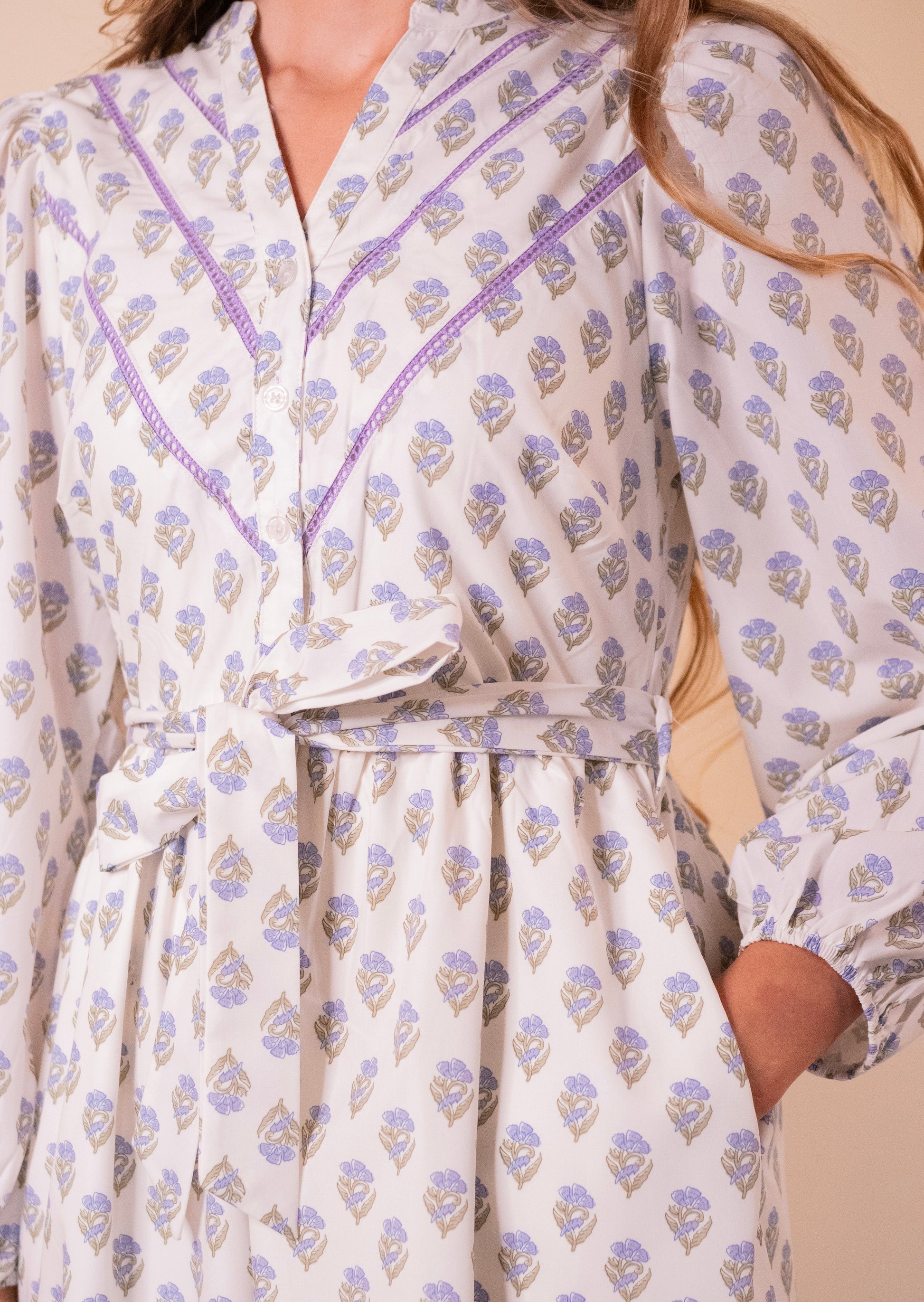 RESTOCKED - The Olivia Printed Shirt Dress in Cream
