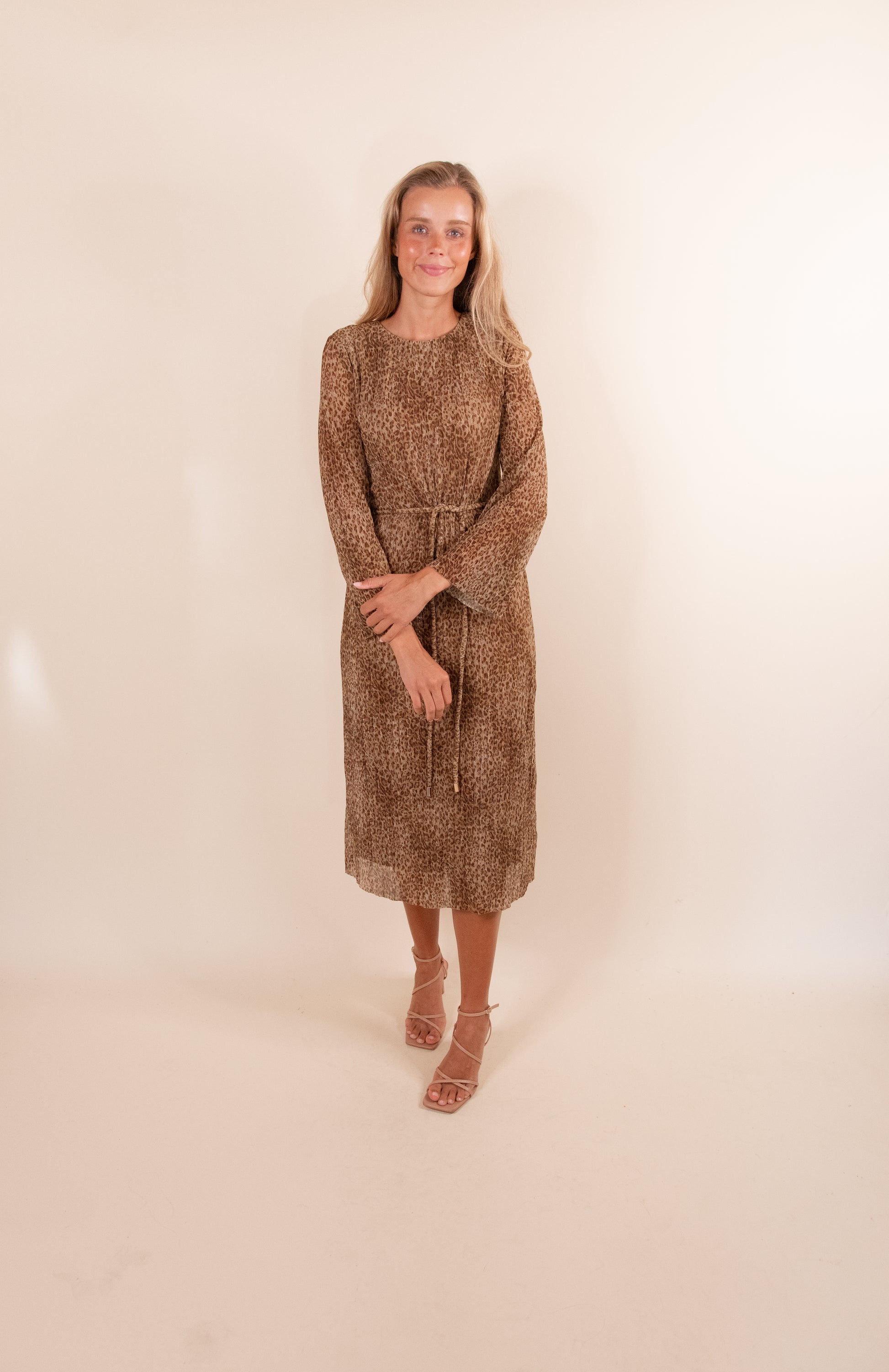 The Dorothy Chiffon Pleated Dress in Golden Leopard