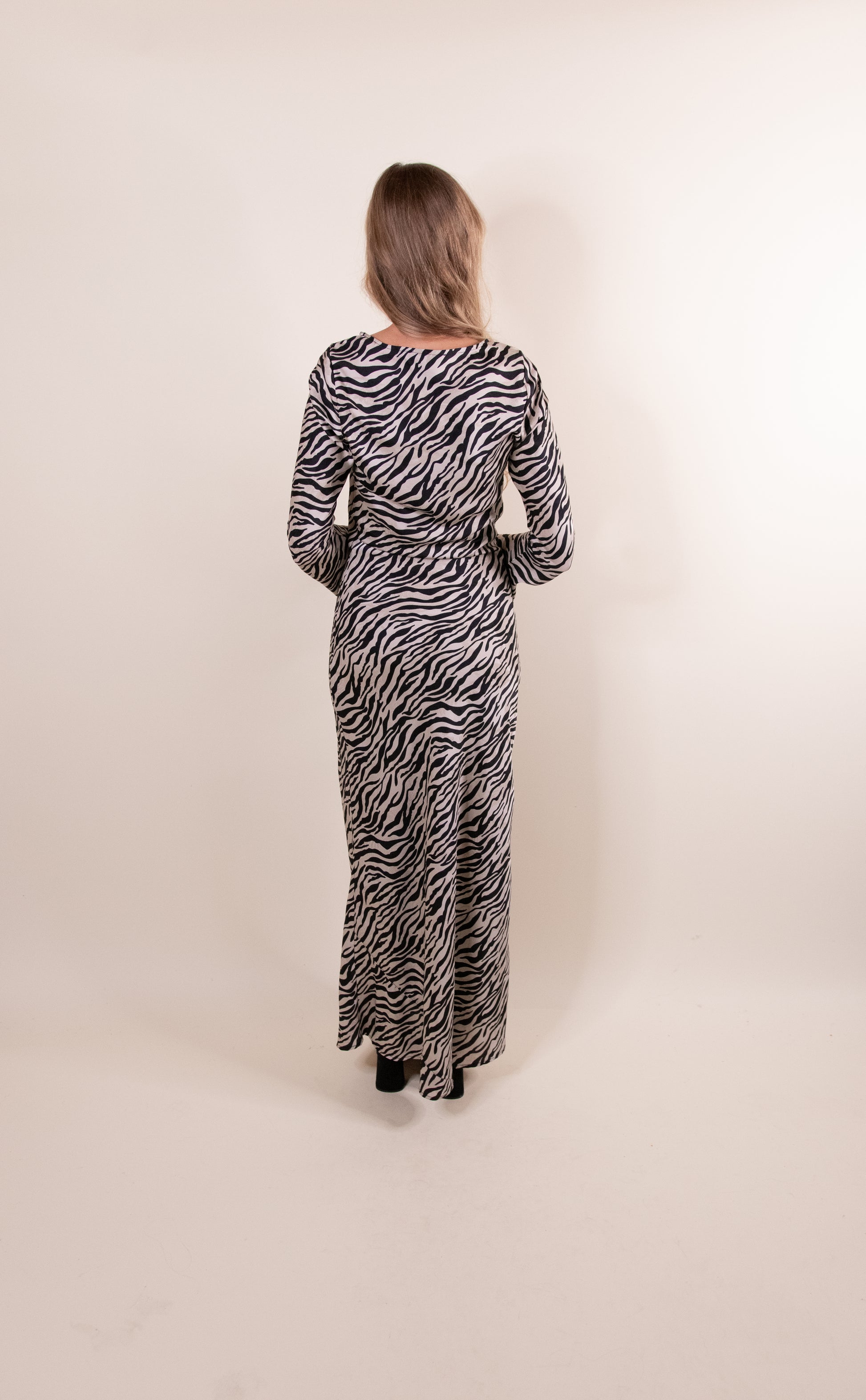 The Sofie Satin Dress in Zebra Mix is designed for the woman who appreciates refined sophistication. This stunning maxi features a luxurious textured satin-like material that drapes beautifully against the skin. The fitted bodice is ultra flattering, while graceful bell sleeves add an undeniably feminine touch. The floor-length silhouette creates an elegant, elongating effect perfect for special occasions or elevated everyday wear. Whether you're attending a formal event or simply want to feel polished and put-together, this dress delivers timeless style with modern flair.