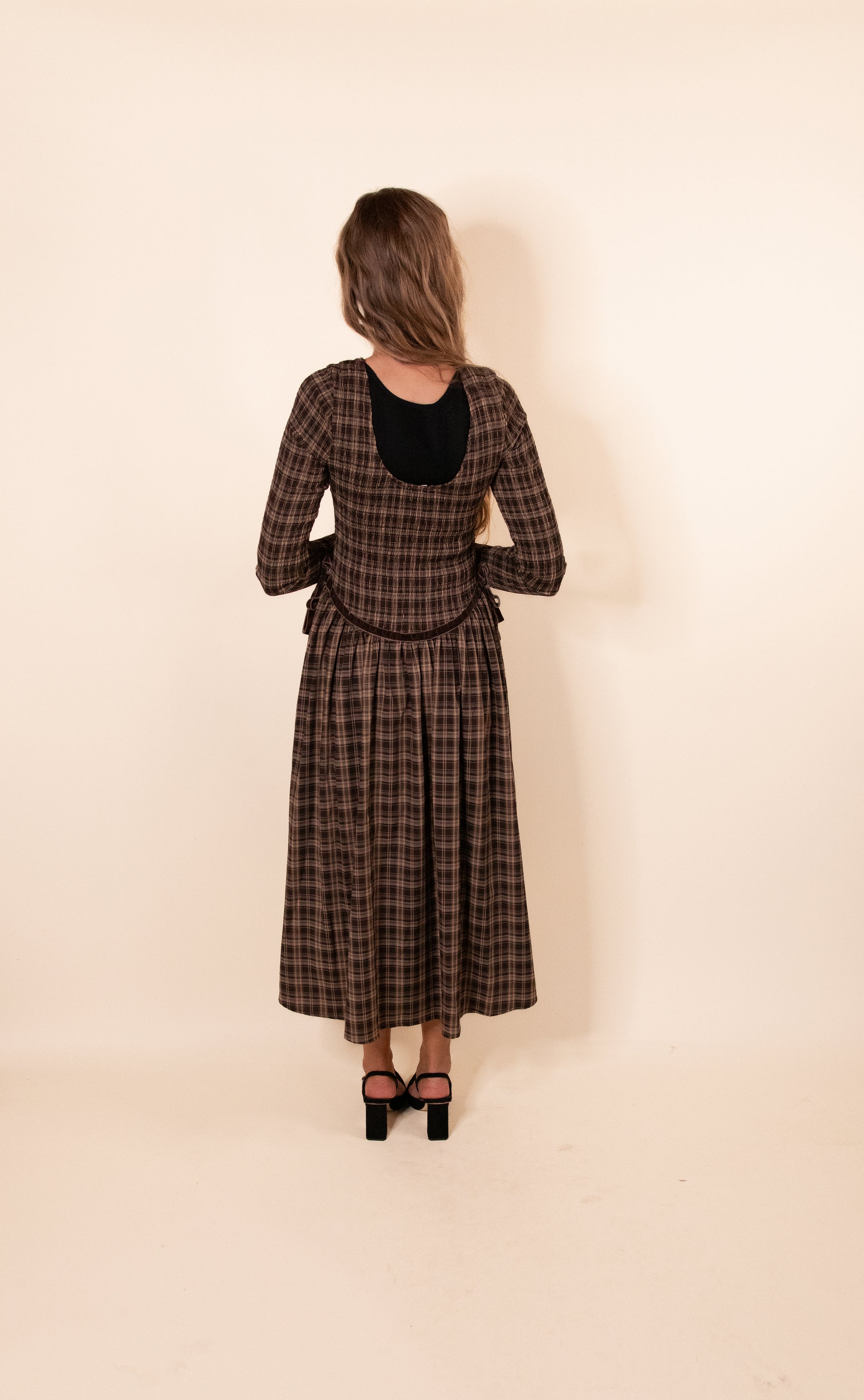 Discover romantic sophistication with The Wrenley Smocked Maxi Dress in Brown Plaid. This enchanting piece features delicate smocking across the bodice and long sleeves, finished with charming lettuce-edge details for a touch of vintage-inspired elegance. The drop waist is adorned with luxe velvet ribbon trim and graceful bow accents that draw the eye and define your silhouette. A gathered skirt flows into a flattering fit-and-flare cut that skims your curves beautifully, while the maxi length strikes the perfect balance between modest and modern. Perfect for those who crave feminine details with timeless appeal.